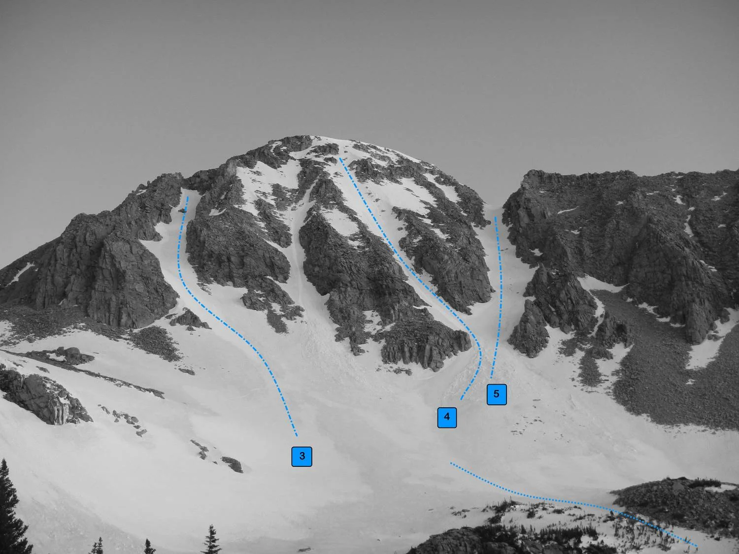 Routes 3, 4, 5 - The Autobon Couloirs